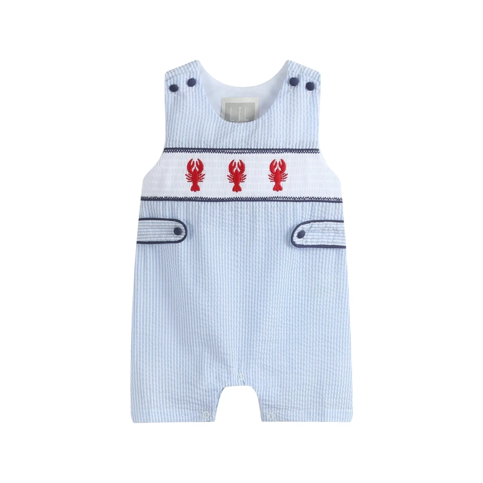 Let your little one make a splash in these Blue Stripe Crawfish Smocked Shortalls! Crafted with smocking details and crawfish embroidery, these shortalls are perfect for a day of fishing or a fun day at the beach. Made in a soft blue stripe cotton, your little boy will be as comfy as he is cute!