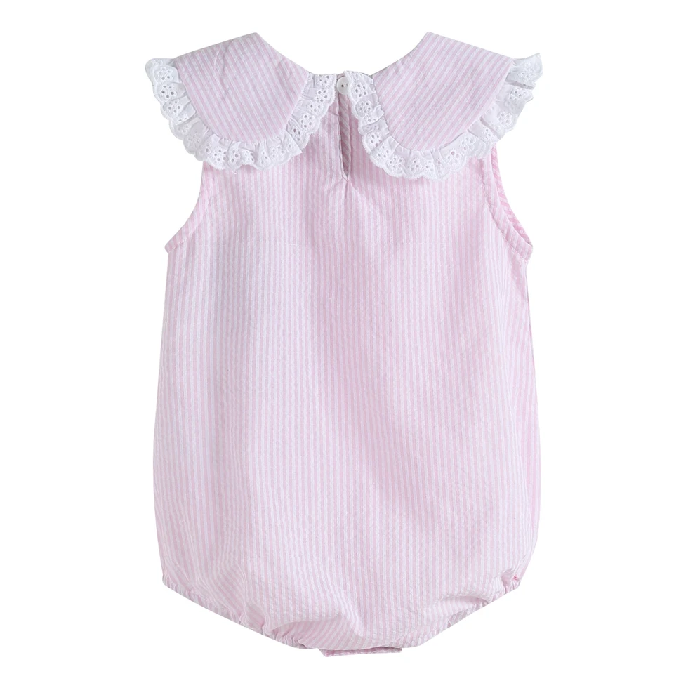 Classic Light Pink Seersucker Collared Baby Bubble Romper