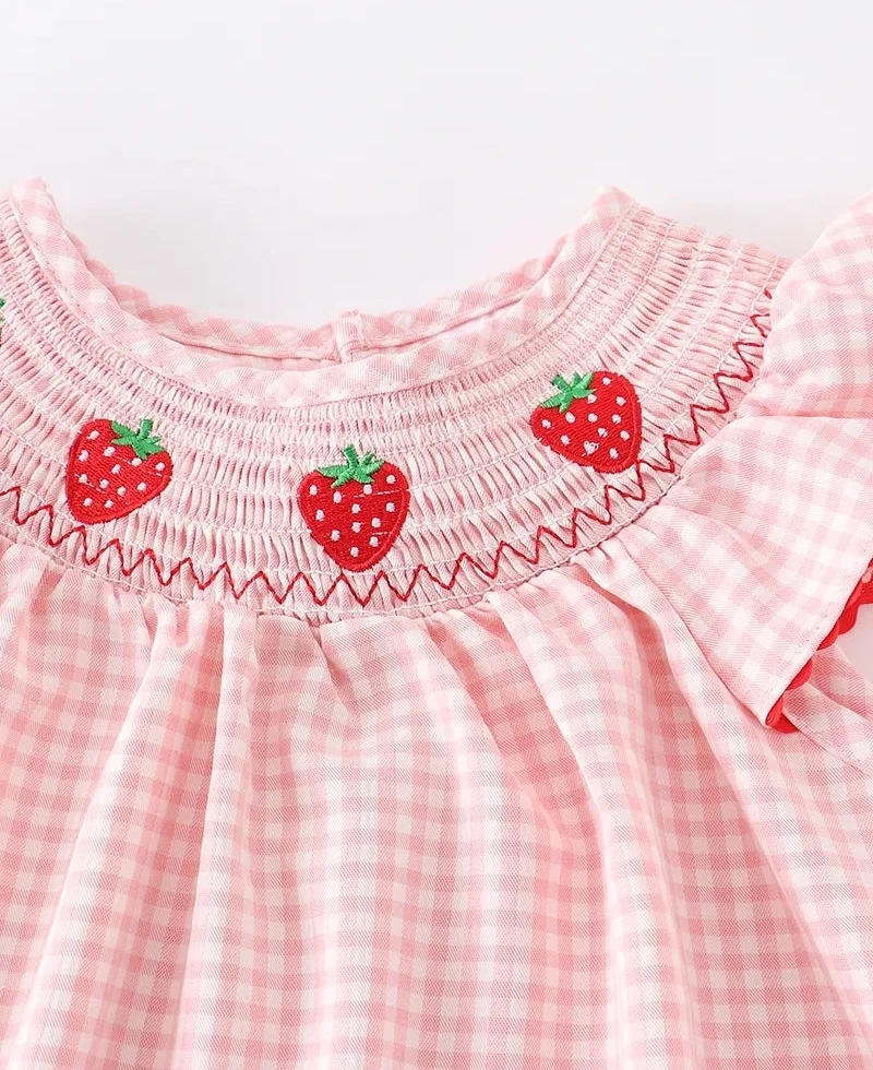 This adorable Baby Girls Strawberry Embroidered Plaid Smocked Dress will make your little one stand out in style. The dress boasts delicate strawberry embroidery and a classic plaid design, while the smocked waist adds a touch of sweetness. Perfect for any occasion, your baby girl will look and feel her best in this charming dress!